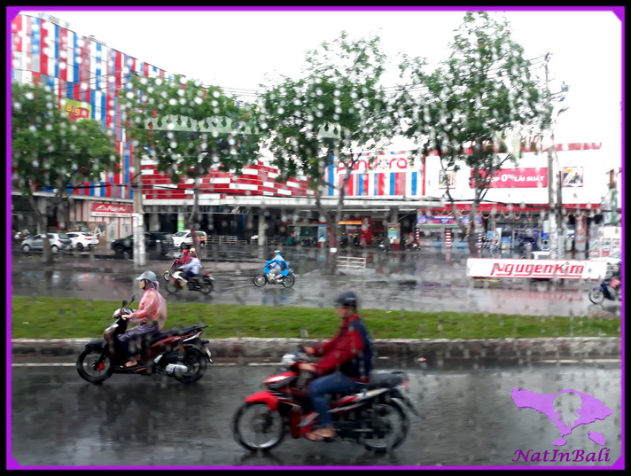 Xin Chao (means hello) Viatnam.. Memasuki negara Vietnam, kami malah disambut oleh hujan yang sangat deras.. hahaha.. Hujannya bahkan awet sampai kami tiba di Ho Chi Minh City.. Rasa kantuk mendadak hilang melihat pemandangan di luar jendela bus.. Pemandangan yang sering saya lihat di TV dan saya baca di internet, akhirnya bisa saya lihat secara langsung dengan kedua mata saya.. Bagian paling seru tentu melihat banyaknya pengendara sepeda motor di jalan raya.. Indonesia saja kalah kok.. hehehe..